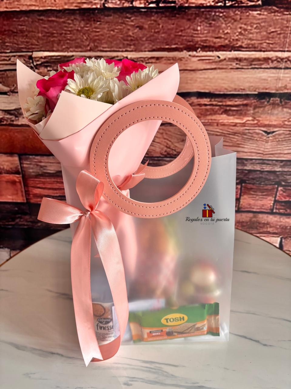 bolsa de regalo de plástico esmerilado con asas color ROSADO O PALO DE ROSA