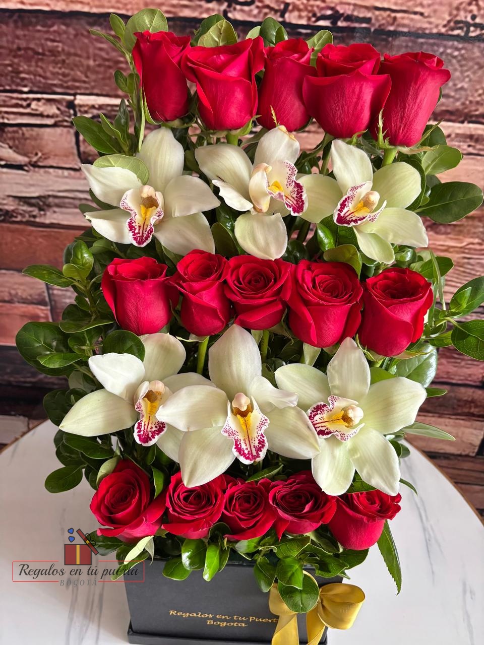 Caja rosas y orquídeas